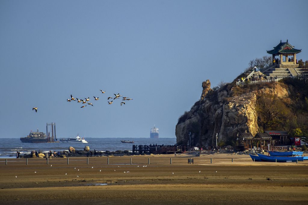 | 大海,山體,飛鳥共同組成了一幅和諧的畫面,很好的視覺效果。 |