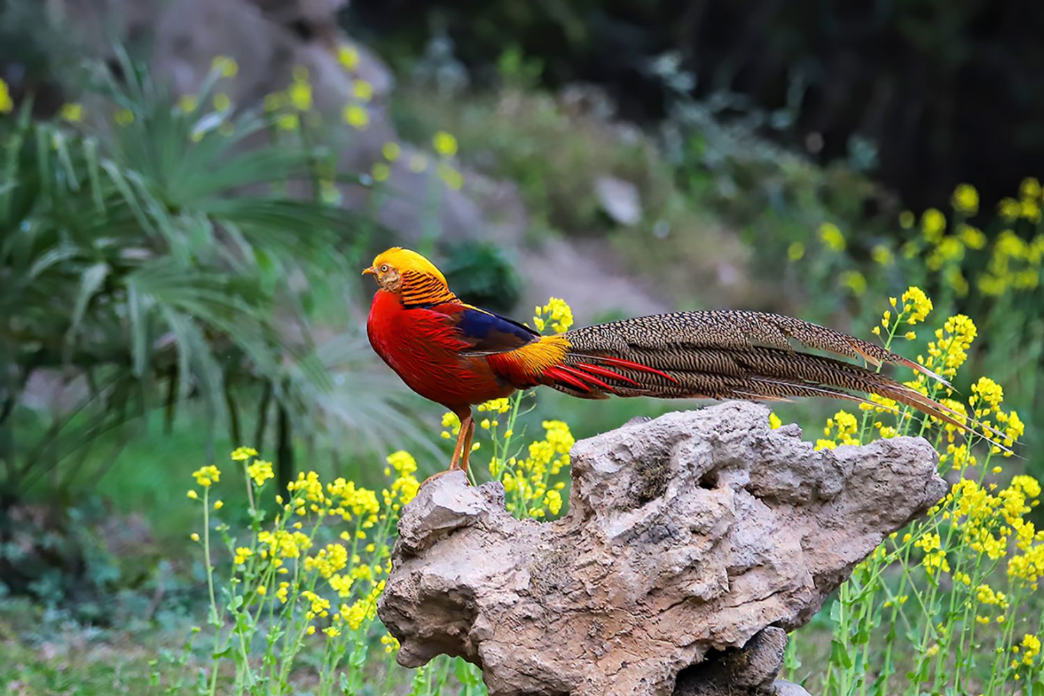 正文摘要:紅腹錦雞(學(xué)名:Chrysolophus pictus):又名金雞,中型雞類,體長59-110厘米。尾特長,約38-42厘米。雄鳥羽色華麗,頭具金黃色絲狀羽冠,上體除上背濃綠色外,其余為金黃色,后頸被有橙棕色而綴有黑邊的扇狀羽,形 ... |